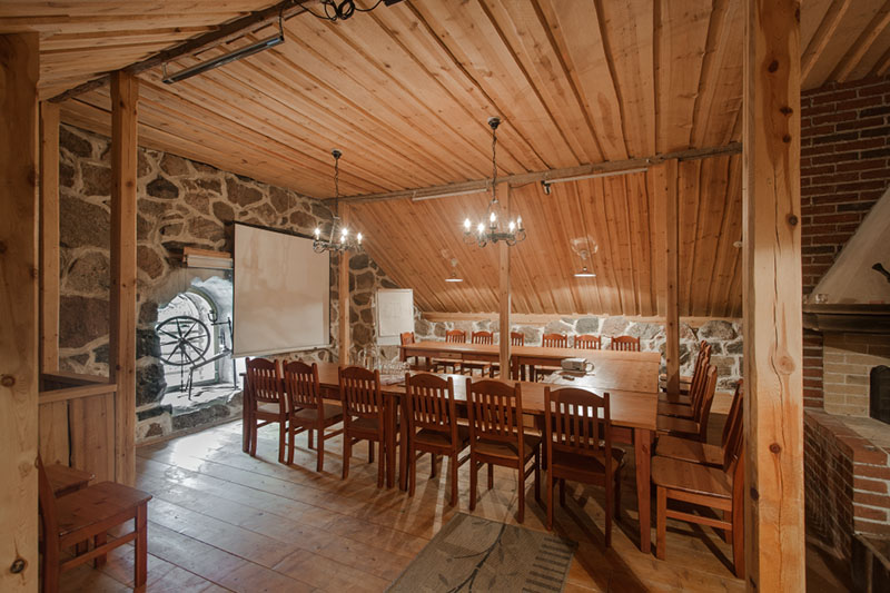 Tunnelmallinen juhlatila kunnostetussa viljamakasiinissa